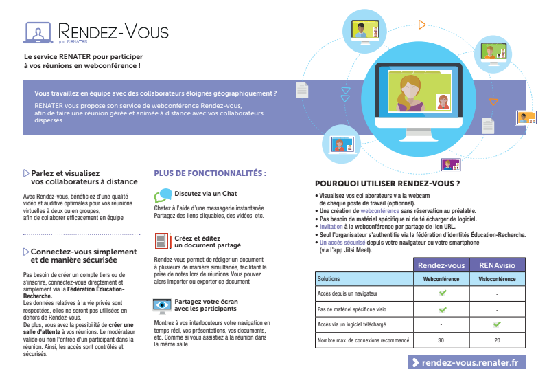 This service is available to all the organisations connected to RENATER. People from outside the community can participate in conferences, either from within France or from abroad, but only members of the community can start a conference by authenticating their identity beforehand via the identity federation.